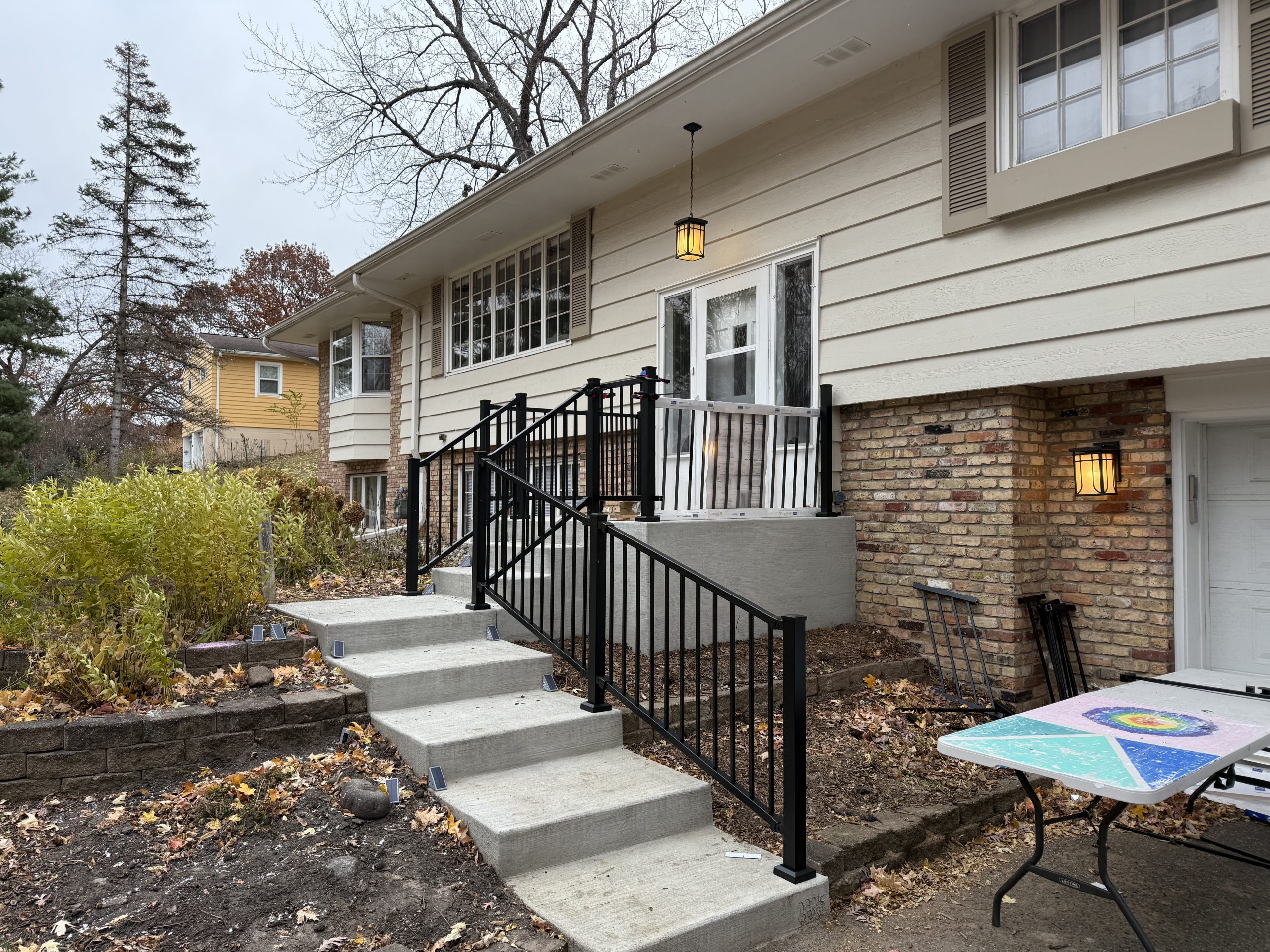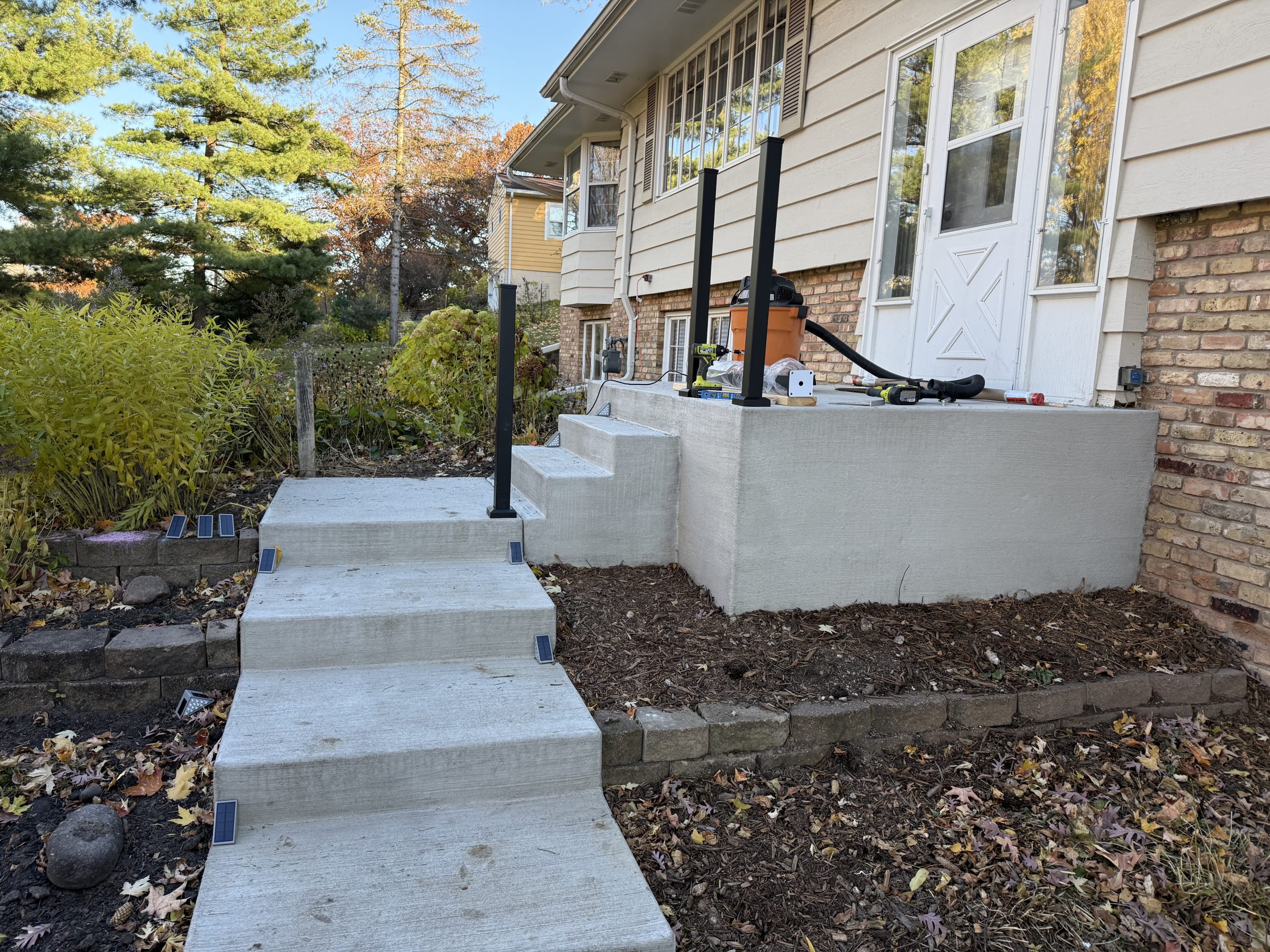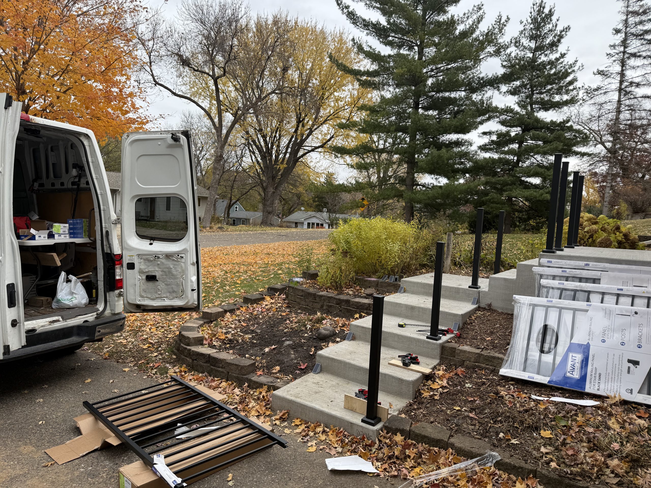 Handrails, Railing Systems for your steps and decks. Aluminum Railing Installation — Free Delivery + Free Estimate Don’t overpay for welded railings. Aluminum railing systems are durable, powder-coated, and look great on any deck or porch. – Free delivery from Menards – Free on-site estimate + sketch – We can prepare your Menards online cart so you can get the 11% rebate Pricing: • Posts: $60 installation + $84 material • Panels: $120 installation + $153–$182 material + $30–$40 brackets – Example Project (pictured above) – 10 posts, 3 straight panels, 4 stair panels – Price Calculation – [ Labor ] 10 posts × $60 = $600 8 panels × $120 = $960 Labor total = $1,560 [ Materials ]Posts: 10 × $84 = $840Straight panels: 3 × $153 = $459Stair panels: 4 × $182 = $728Straight bracket packs: 4 × $36 = $144Stair bracket packs: 4 × $46 = $184Anchors: $60Materials total = $2,415Total project cost: $3,975(Custom welded quotes were over $7,000)Plus you’ll get back about 11% from the material cost with Menards rebates. Submit a request Recent Projects Railing system installation Porch renovation Window Trim Replacement Gates Installation Steps Trim Replacement Post Station Fascia Painting Flagstone Path Deck Boards Replacement Protect the Under-Deck Area from Rain Before Before In the proccess After After Hang a chandelier Handrails Installation Bookcase fabricating Portable Washing Machine Express Connection Furniture Repair Chair base came off Wood base has broken Fabricating metal enforcement Assembling Final result Leg's joint cracked Disassembling New Joint House Trim Repair and Replacement Chimney Flashing Repair Water leakage was caused by improperly installed flashing Fixed by properly installing new flashing Final result with replaced trim board Flashing length wasn't enough Final result Crown Molding Replacement Crown deteriorated and detached New crown installed all around New crown installed all around Animal house roof improvement Old roof in bad condition Plywood is rotten New insulated roof fabrication Final result Trim End Restoration Submit a request