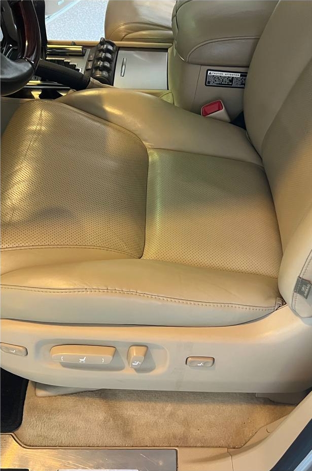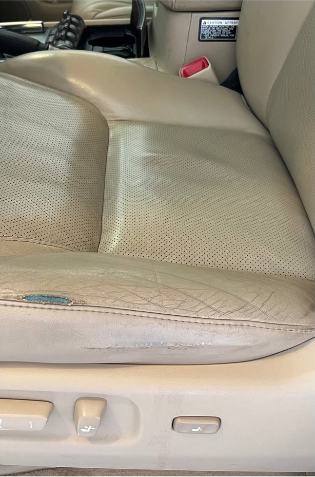 The damage on this leather seat was located on the outer bolster area, where wear typically develops from frequent entry and exit. In this case, the leather was worn through along the decorative stitch line, making a surface repair insufficient. The panel itself was compromised, so the correct solution was a full panel replacement.