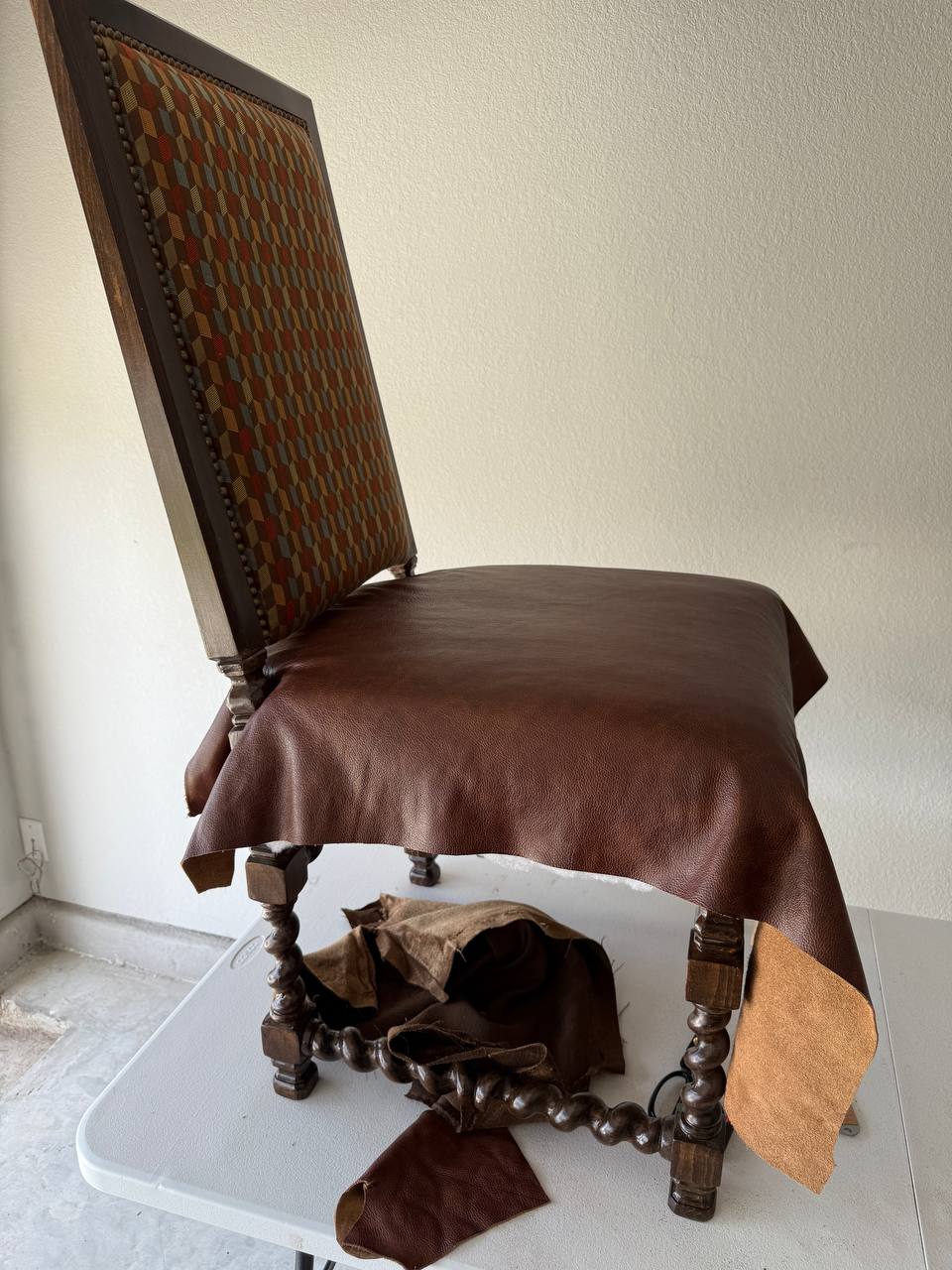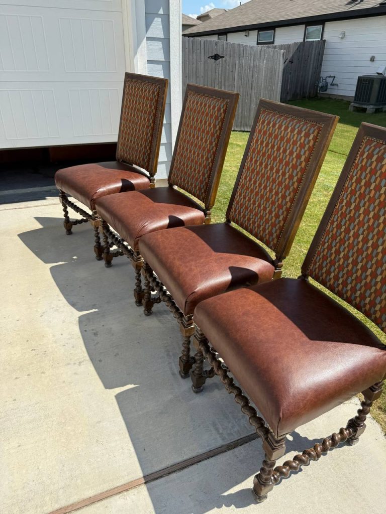The client requested a premium refresh for their dining chairs, which featured beautiful vintage frames but worn-out seating. Our goal was to replace the old upholstery with high-quality leather, ensuring the new material complemented the intricate wood carvings and classic design.