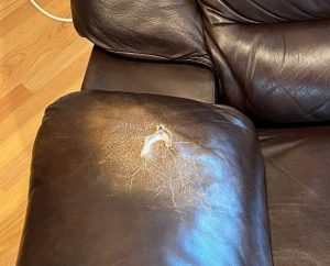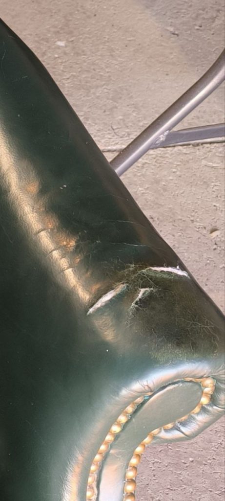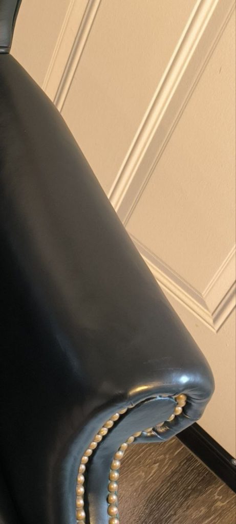We restored the armrest to its original elegance through a meticulous multi-step process. After cleaning and prepping the area, we used a specialized leather binder to strengthen the damaged fibers, followed by a flexible filler to level the claw marks. Our color specialists then custom-blended a multi-tonal green pigment to replicate the chair’s unique aged finish. Topped with a satin protective sealant, the repair is now invisible to the eye and smooth to the touch, fully restoring the chair’s premium look and feel.