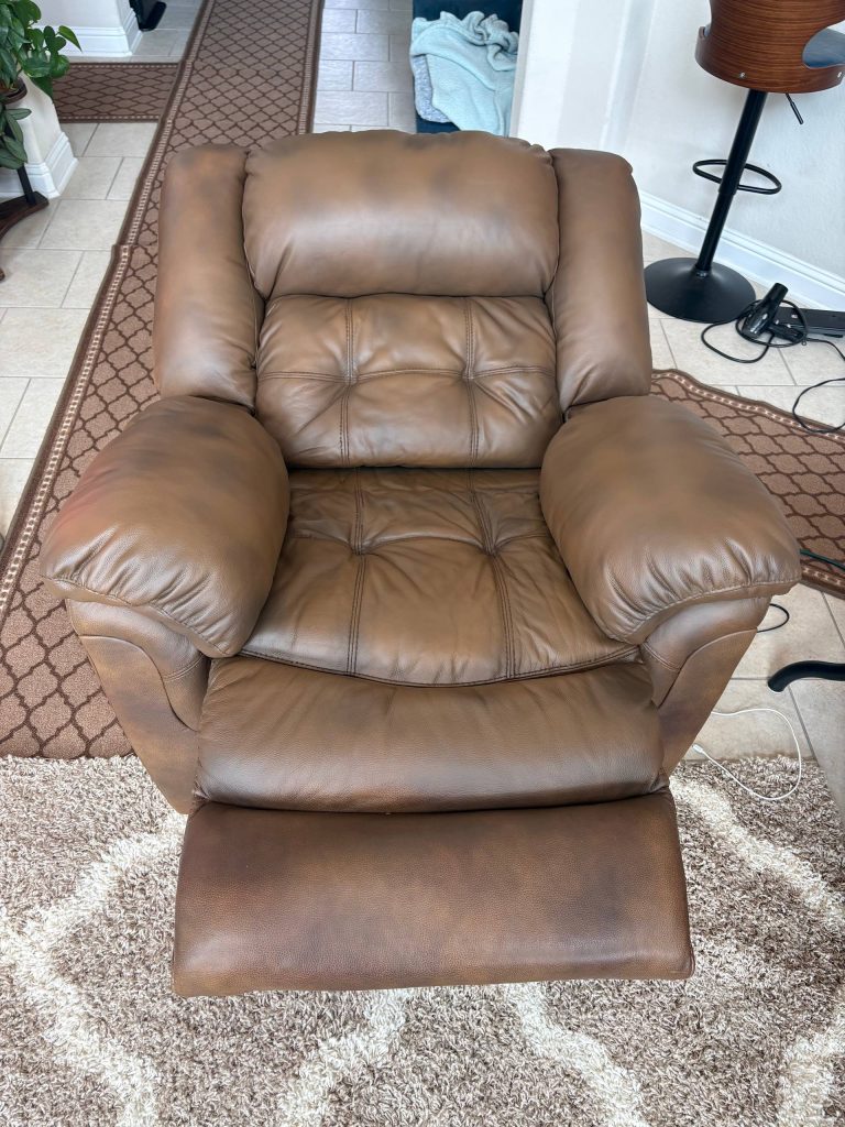 This project involved restoring a leather sofa and chairs set where heavy use had caused the original finish to fade, particularly on the seat cushions and armrests. The primary challenge was the leather’s complex aesthetic: it features a sophisticated two-tone, marbled pattern rather than a single solid color. Our goal was to eliminate the worn, pale patches while ensuring the repair didn’t lose the depth and character of the original multi-dimensional finish.