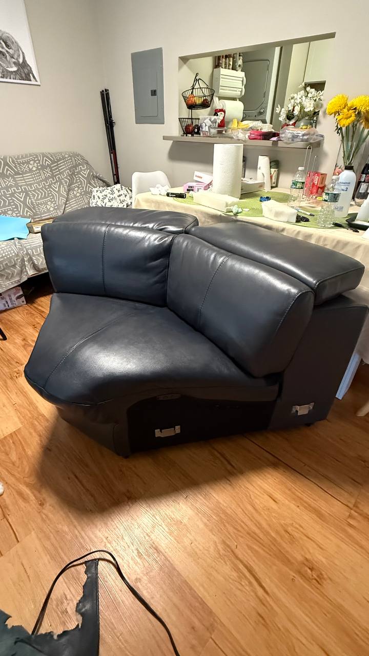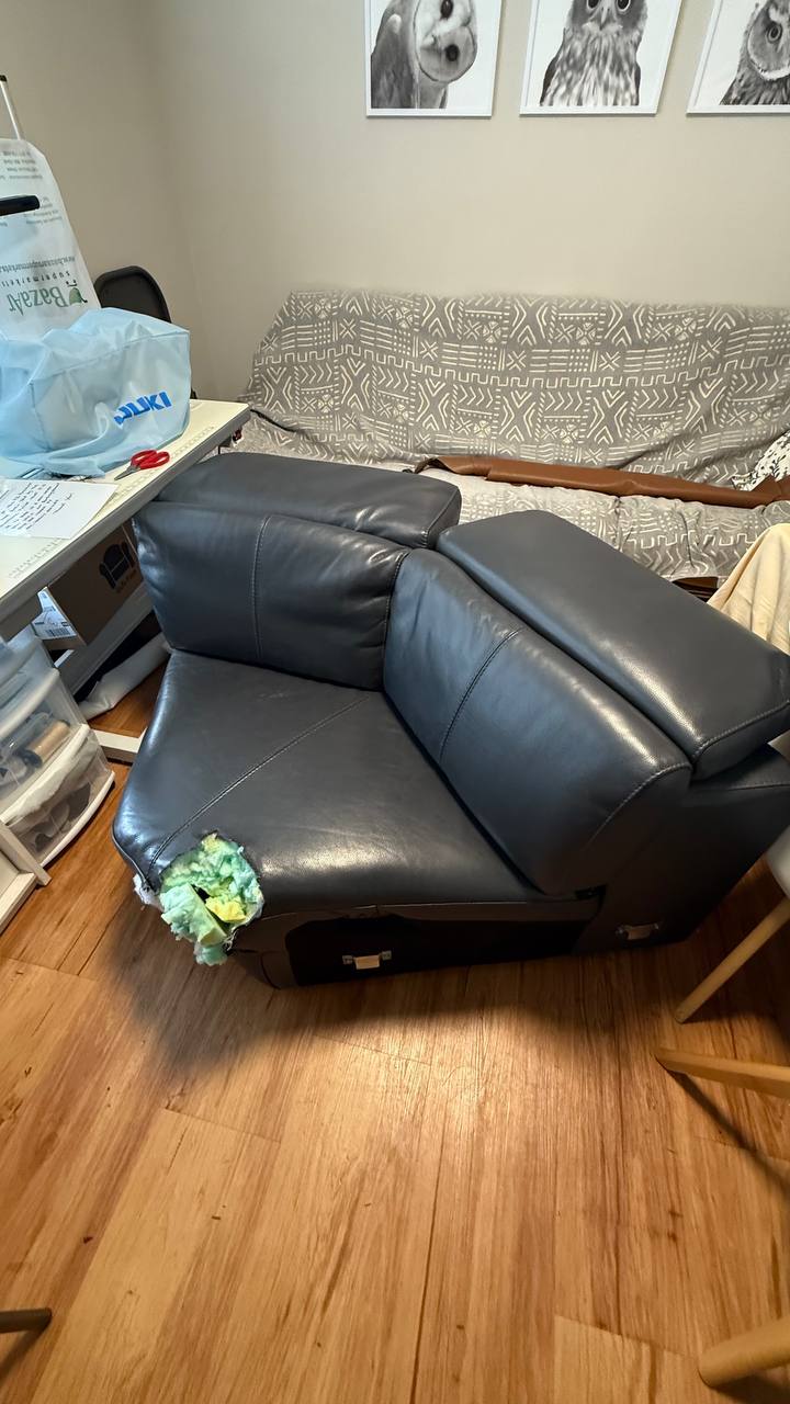 If your dog was bored and bit your sofa, you might think a little filler will do the trick—but sometimes the damage goes too deep for a simple patch. In this case, the black leather corner was so badly torn and punctured that a standard repair wouldn’t provide the strength or seamless look needed for a high-traffic seat. The goal was to perform a complete structural restoration rather than just a cosmetic fix, ensuring the sofa would look and feel like it never met those puppy teeth.