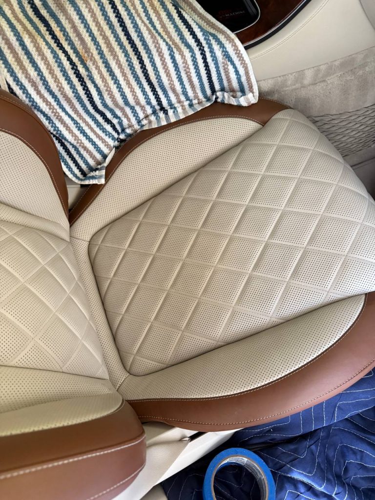 In this case, grapes leaked from a box and stained the leather seat.