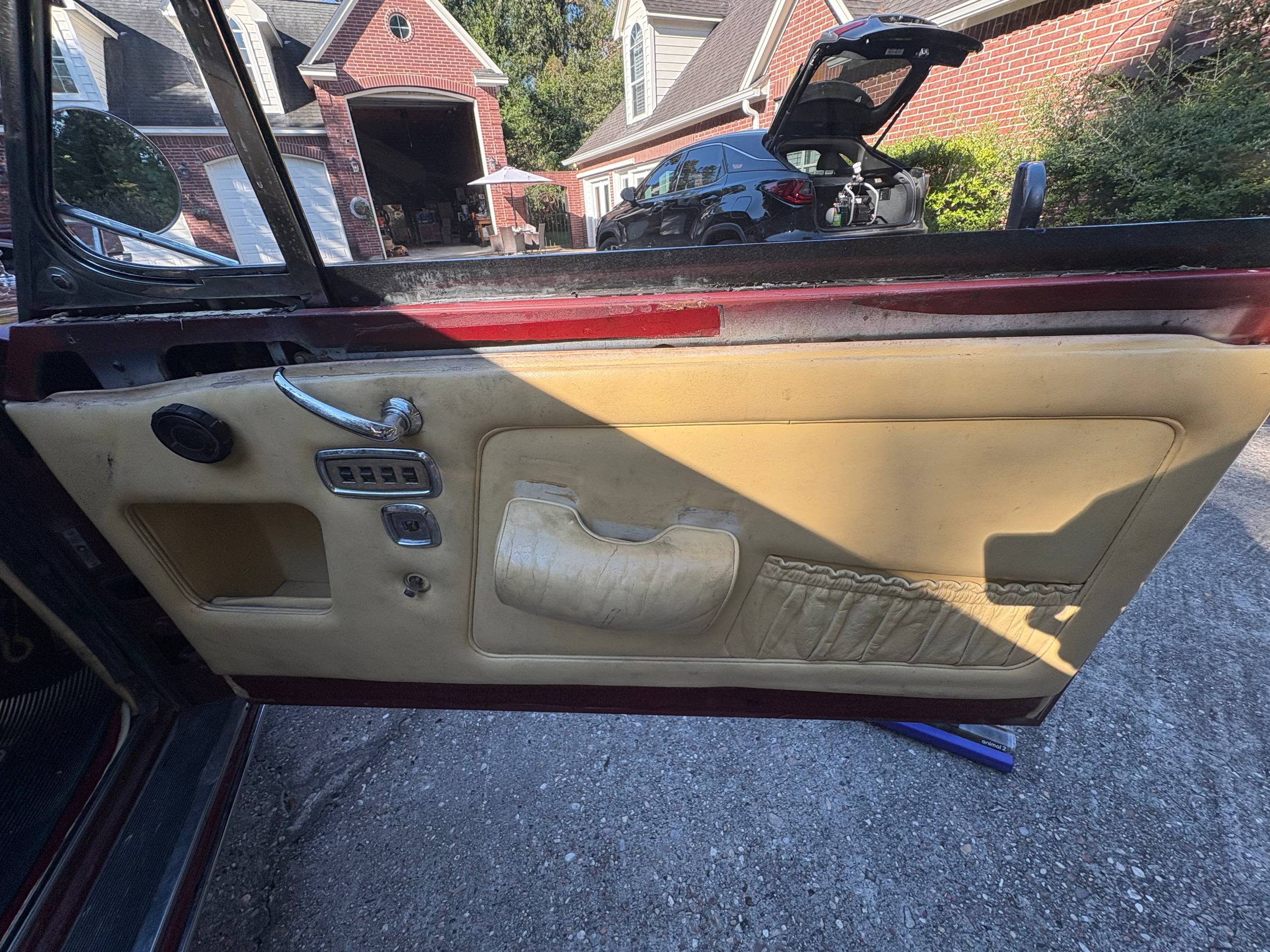 Professional restoration of a punctured vinyl door armrest